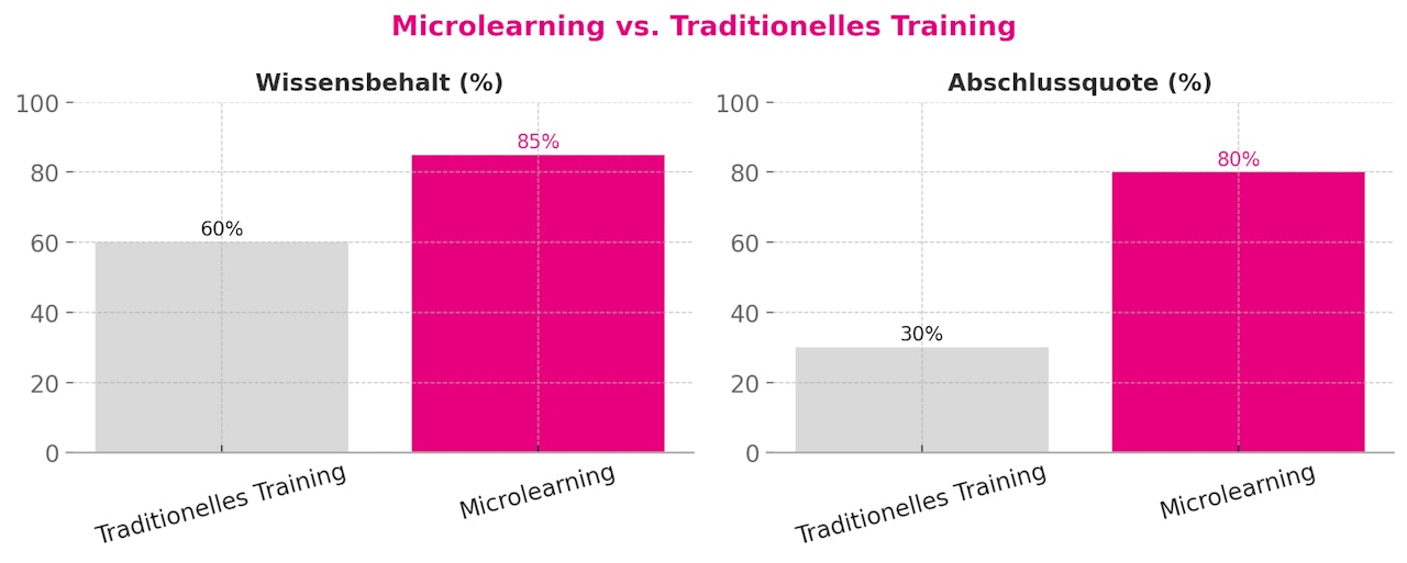 Die Lösung liegt nicht in MEHR Training, sondern in Training, das zur Realität der Arbeitsfläche passt. Microlearning macht genau das: kurze, mundgerechte Module, die sich leicht in einen arbeitsreichen Tag einfügen lassen.