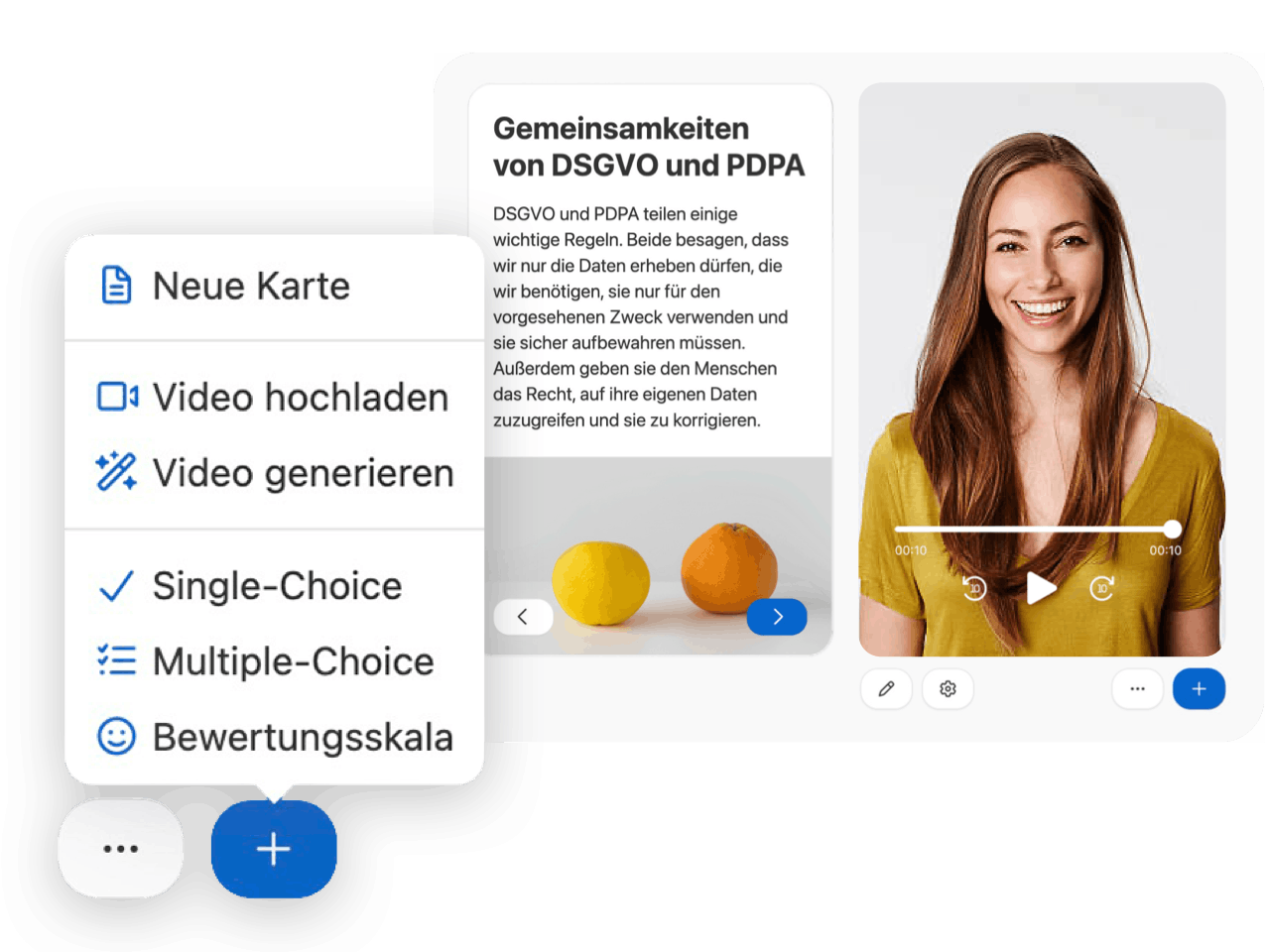 Wähle aus verschiedenen Frage- und Quizformaten und füge Audio- und Videoinhalte hinzu, um eine ansprechende Lernerfahrung für deine Mitarbeiter zu schaffen.